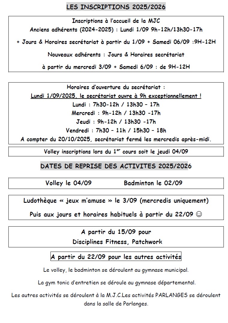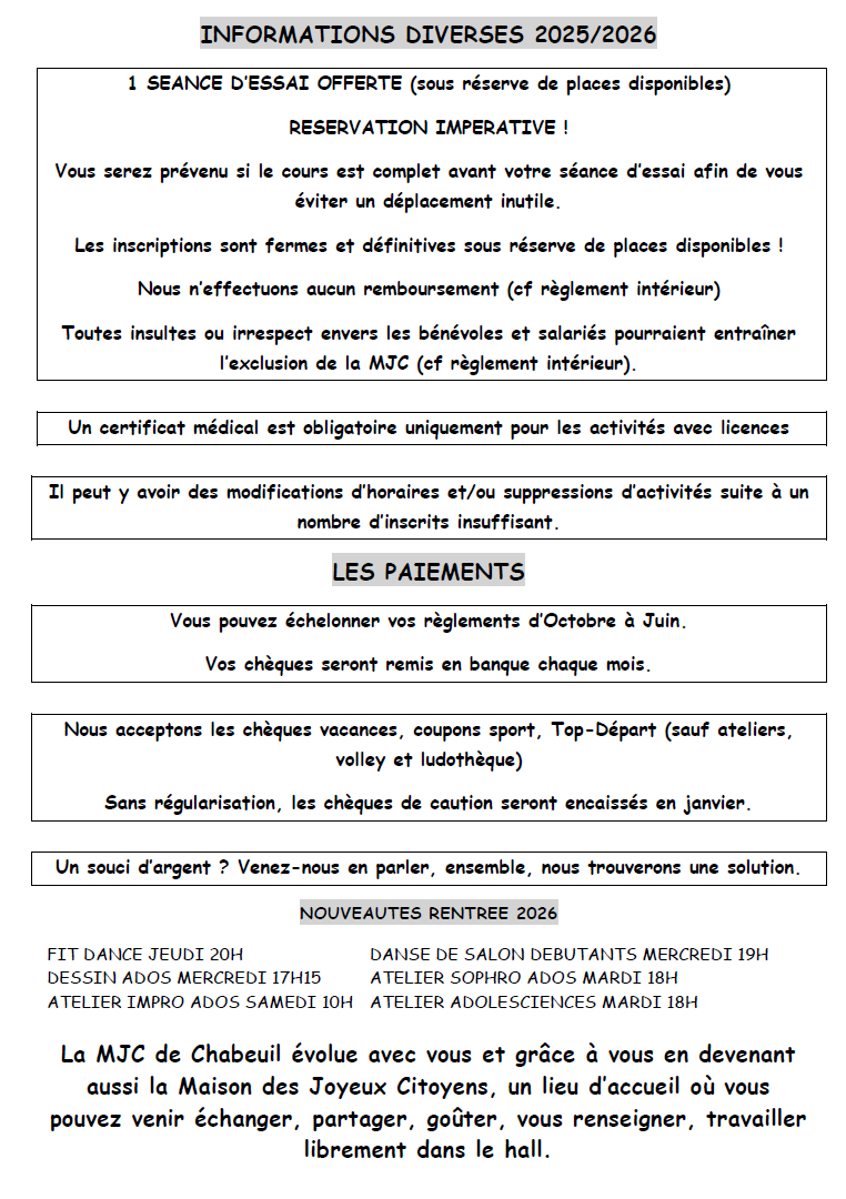 Cliquez ici pour télécharger le formulaire d'inscription de la nouvelle saison.