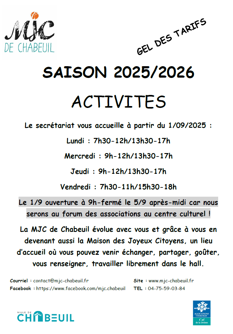 Cliquez ici pour télécharger le programme des activités pour la nouvelle saison.